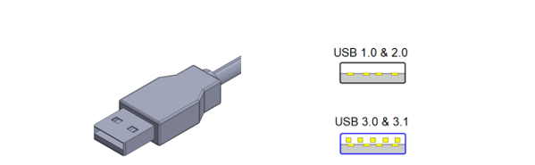 There are many differences between USB 1.0, 2.0, and 3.0 generations, including speed, dimensions, and compatibility. Though not defined in the USB specifications, you can generally tell which USB generation by the color of the plastic inside the device. The USB 1.0 and 2.0 are either black or white, USB 3.0 is blue, and USB 3.1 is teal. The chart below provides the data transfer speeds for the different USB generations. Also, for USB 2.0 and older the data transfer is in a single direction, whereas the later generations USB 3.0 and 3.1, allow data transfer in both directions. The max power output for USB 1.0 is 2.5V / 0.5A, USB 2.0 is 2.5V / 1.8A, USB 3.0 5V / 1.8A and then USB 3.1 is 20V / 5A.