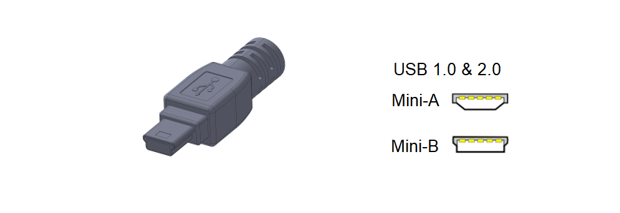 Mini USB plugs type A and B were used for charging older cells phones, cameras and MP3 players. USB mini type B plugs work with the second generation of mini-B and mini-AB receptacles.