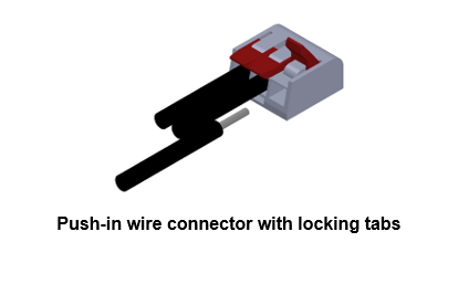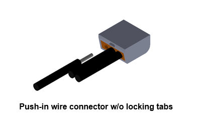 connectors are designed with or without locking tabs. Push-in connectors with